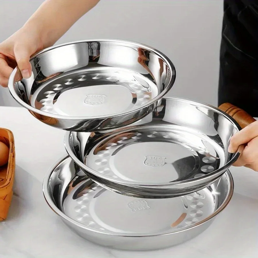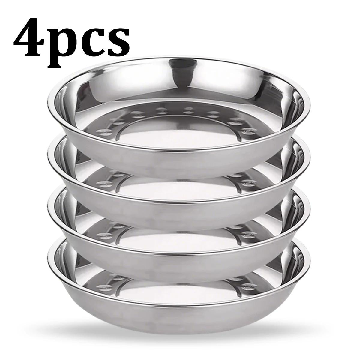 4 pieces Stainless Steel Round Deep Plates, Kitchen Dinner Plates, ...