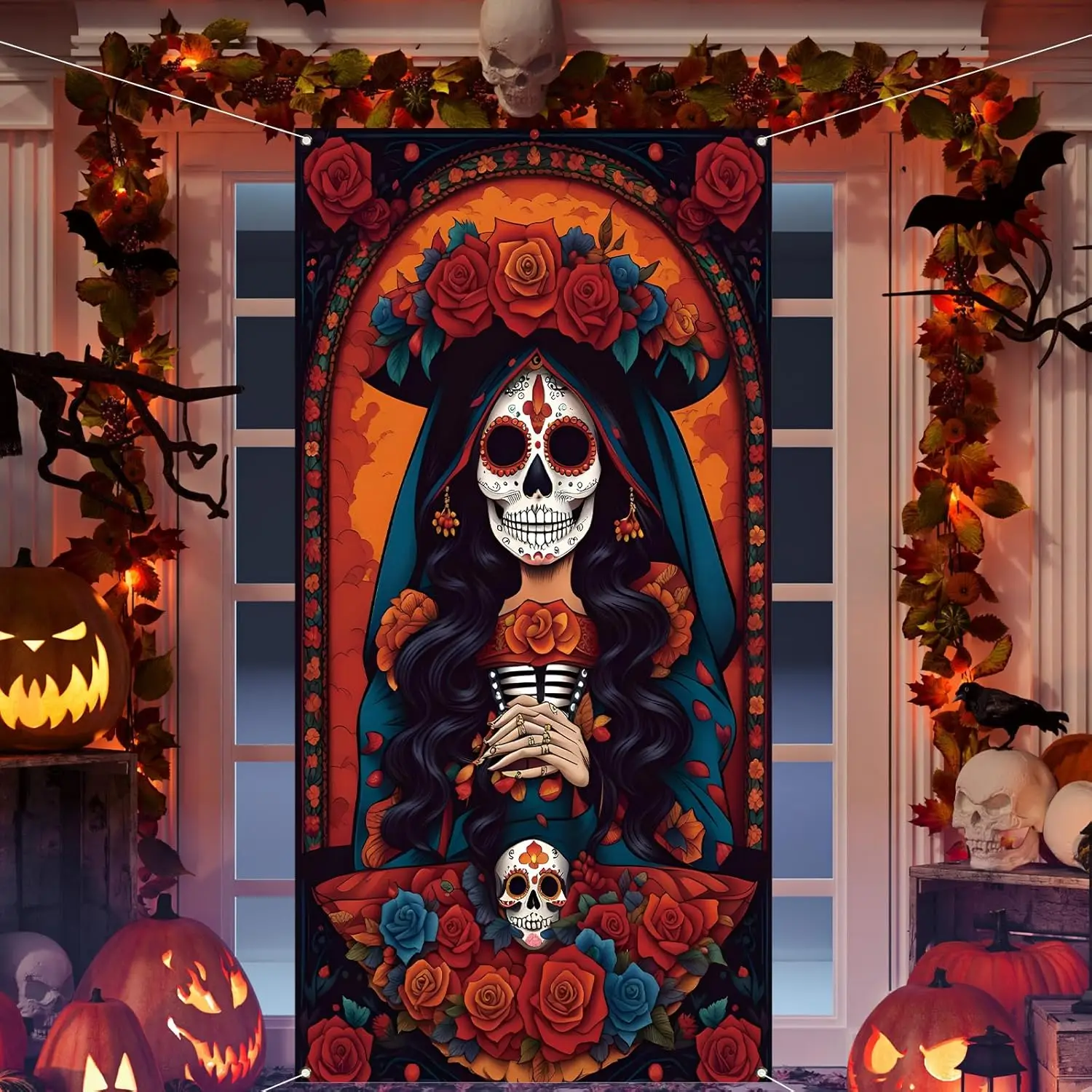 Day of The Dead Door Cover Halloween Boor Banner Backdrop Sugar Sku...