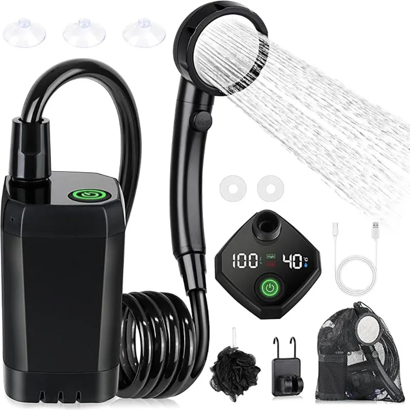 Portable Shower for Camping 6000mAh Rechargeable Camping Shower with Shower Head Intelligent LED Dis...