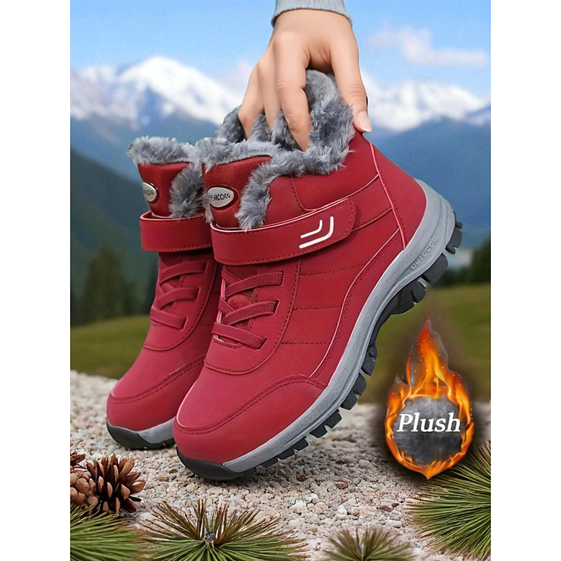 Women's Dark Red Waterproof Winter Hiking Boots – Plush Fur L...