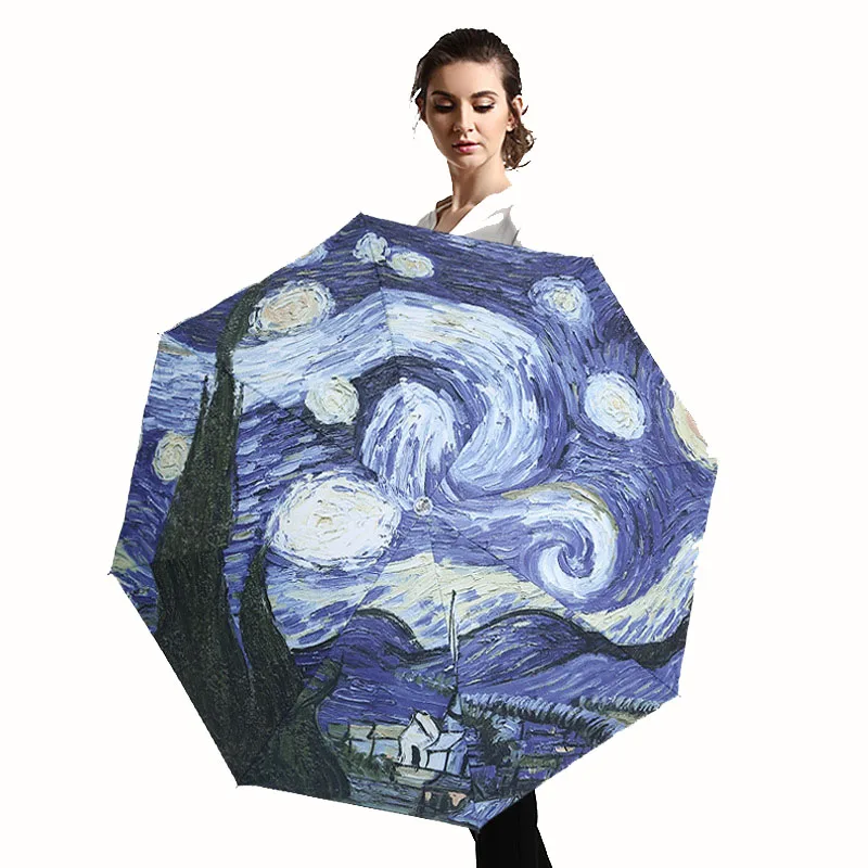 Van Gogh Oil Painting Umbrella Women Creative Starry Sky Arts Parasol Female Outdoor Travel Sun Umbr...