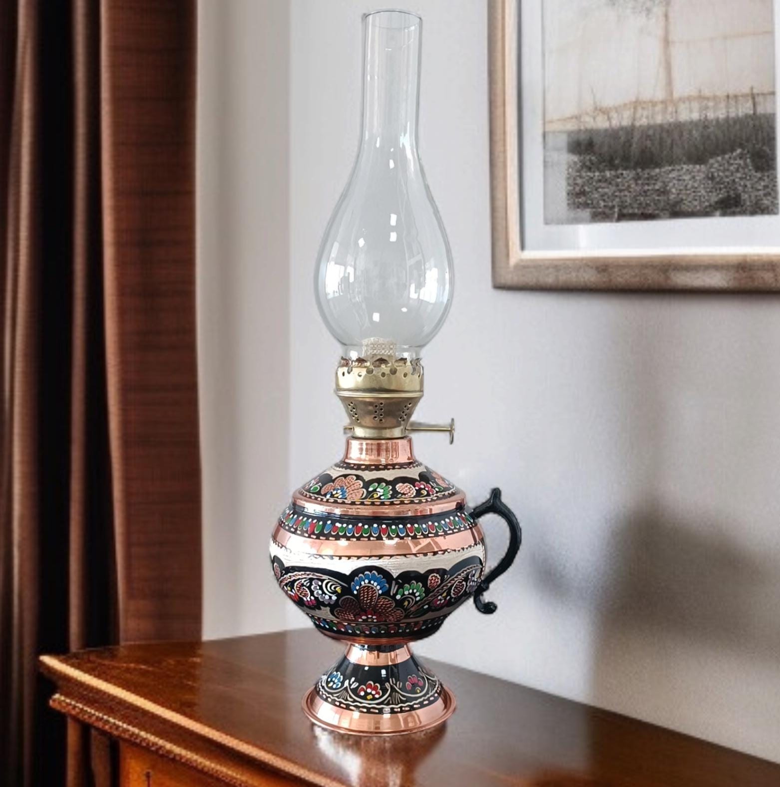 Copper oil lamp, kerosene lamp, victorian lamp, ornate oil lamp, ru...