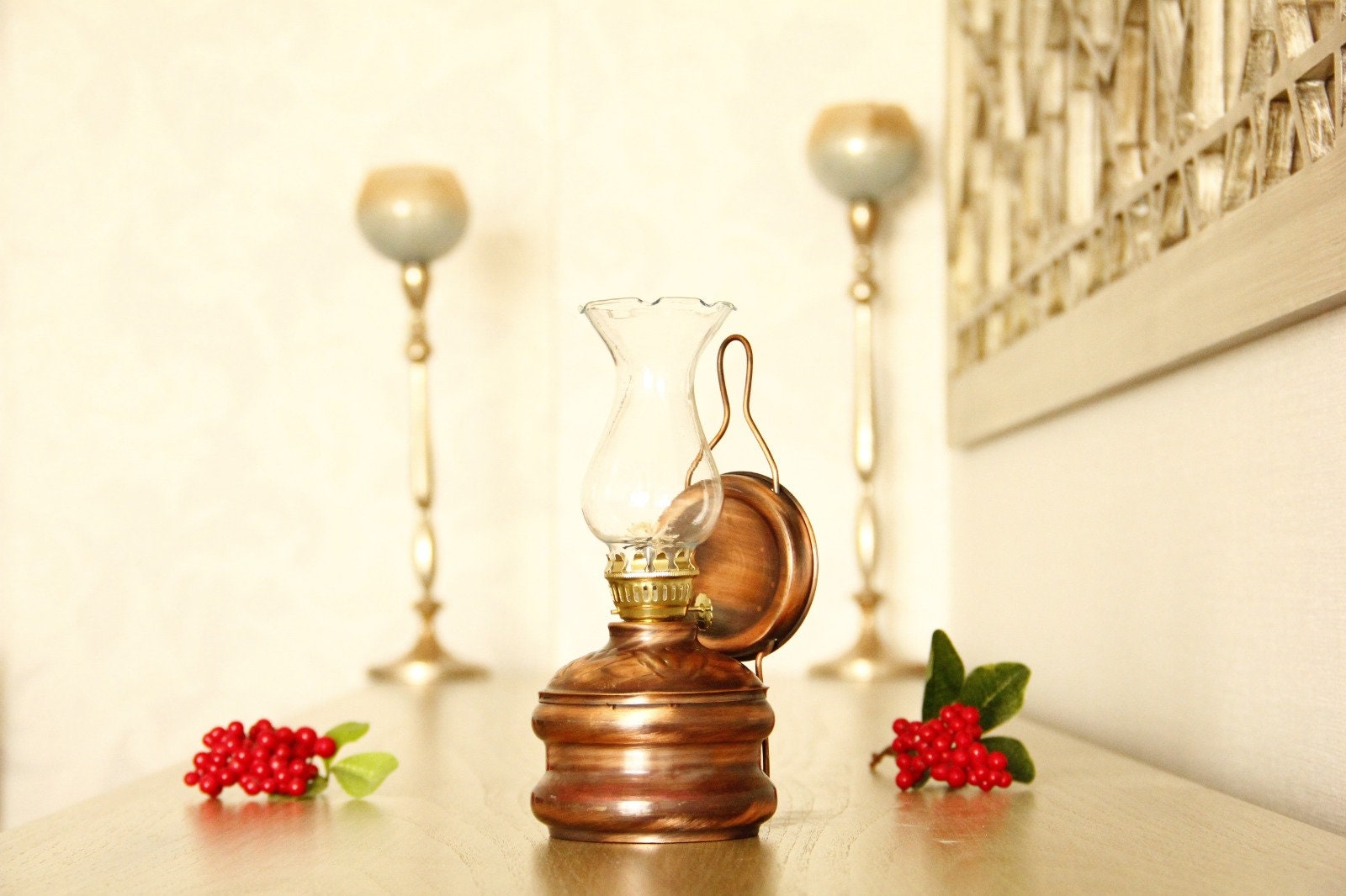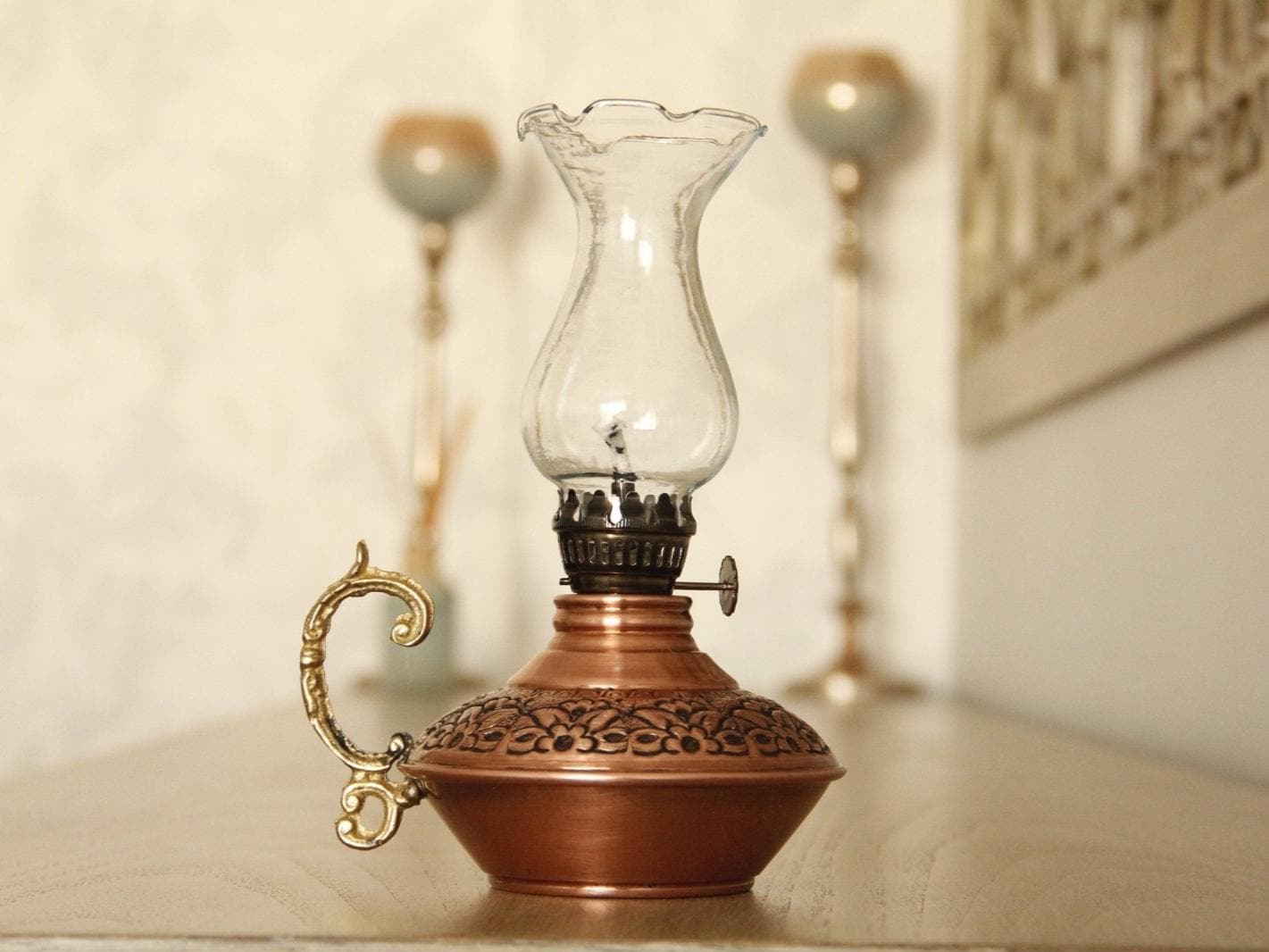 Handmade Vintage Oil Lamp, Oil Lamp, Copper Oil Lamp, Copper Oil La...
