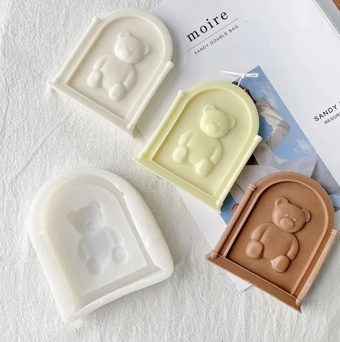 • H25126 DIY Bear Arch Photo Frame Silicone Mold for Candle Making Cr...