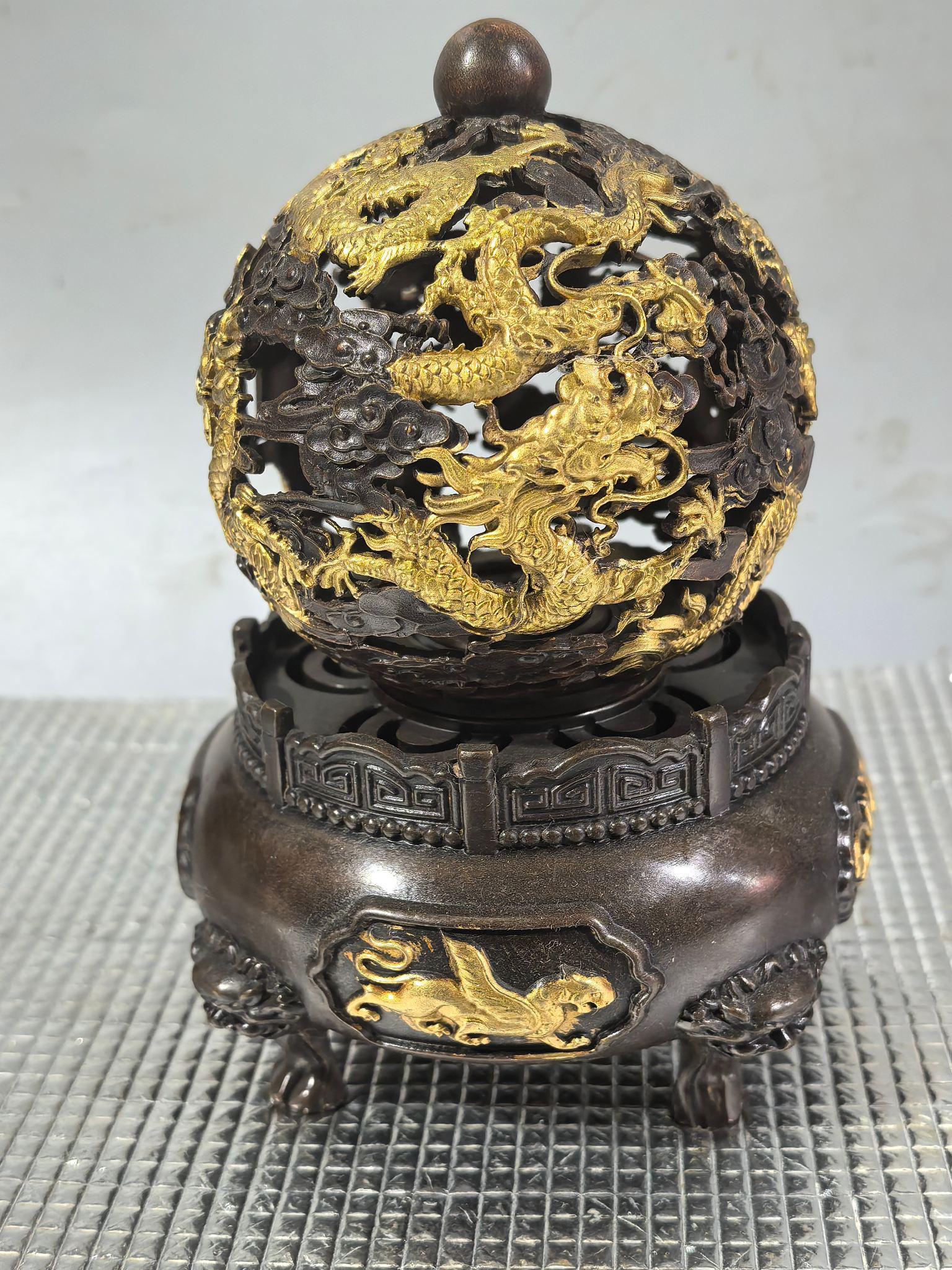 Chinese antique pure handmade pure copper Boshan incense burner orn...
