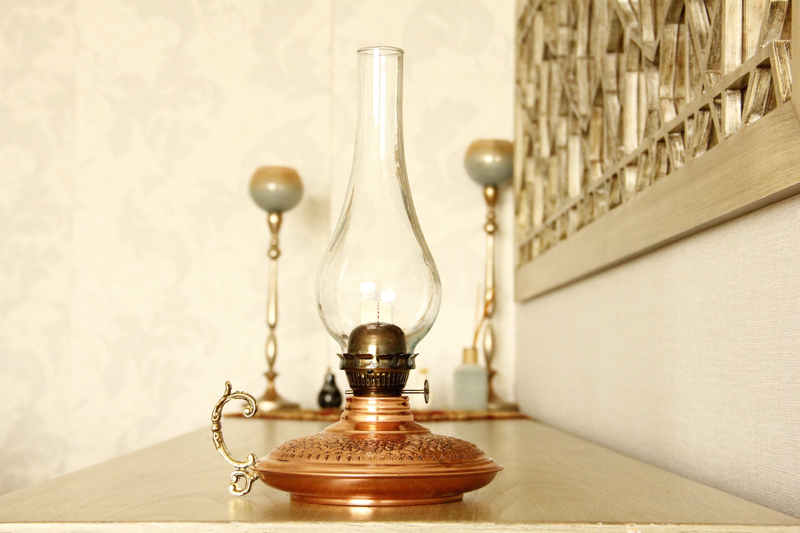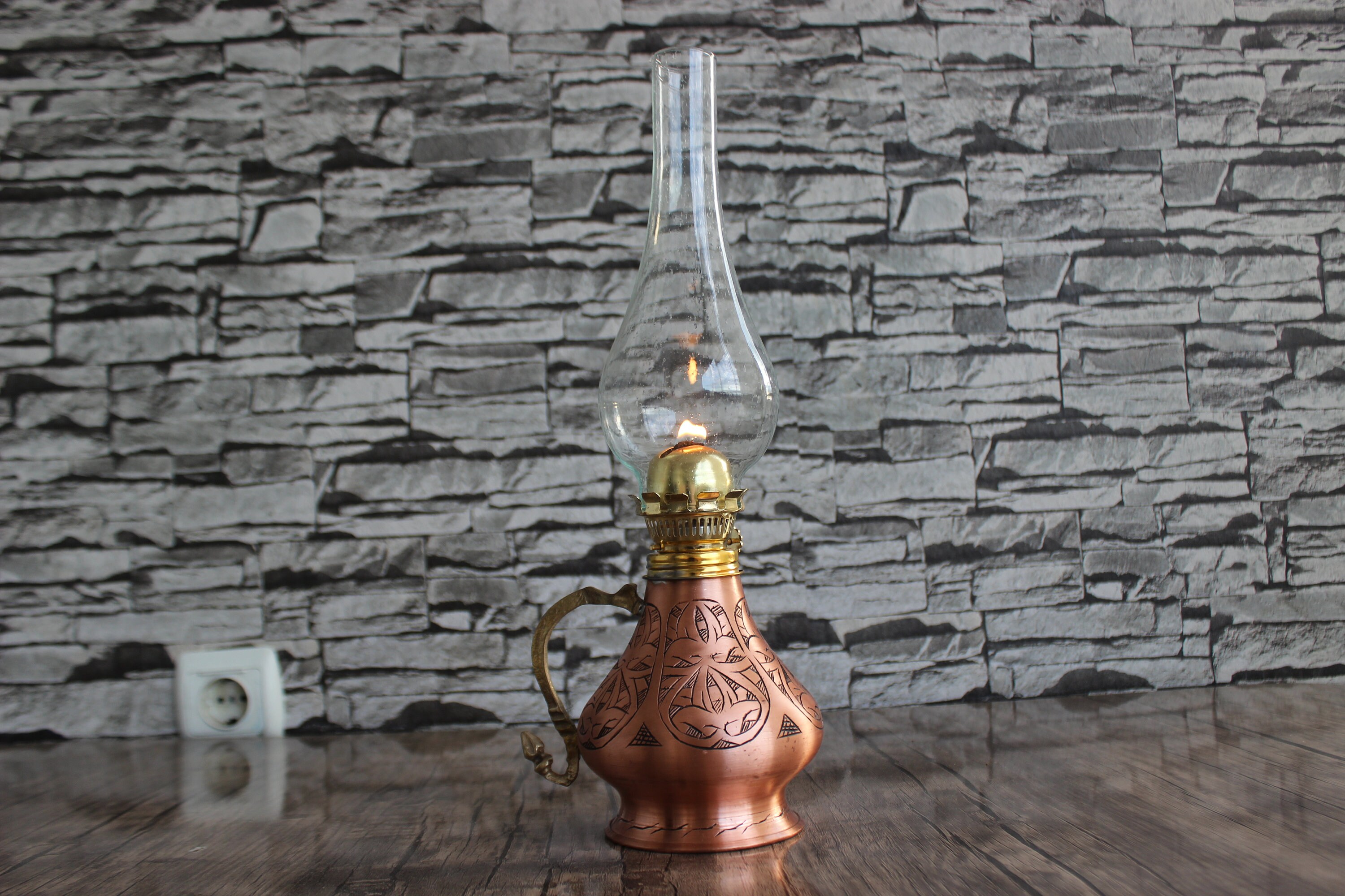 Handmade Vintage Oil Lamp, Oil Lamp, Copper Oil Lamp, Copper Oil La...