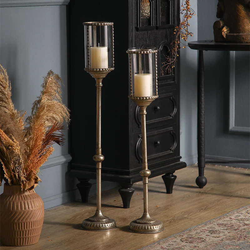 Home Vintage Iron Handmade Floor Candlestick Combination Candle Lam...