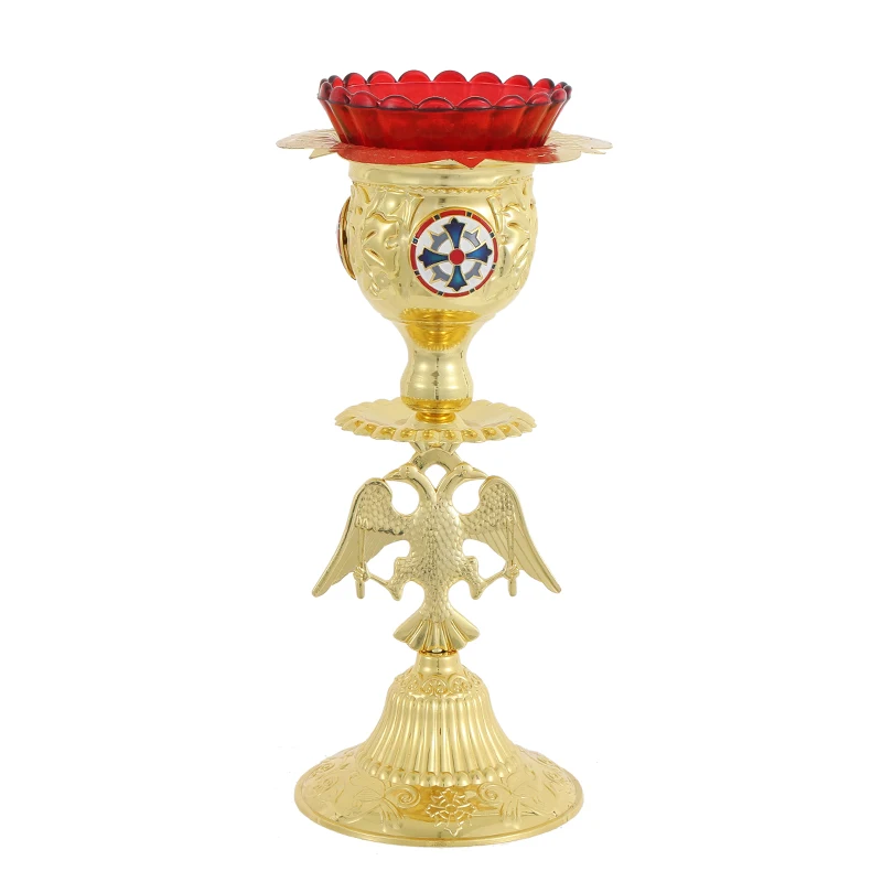 Orthodox Candles for Church With Red Glass Icon Oil Lamp Standing G...