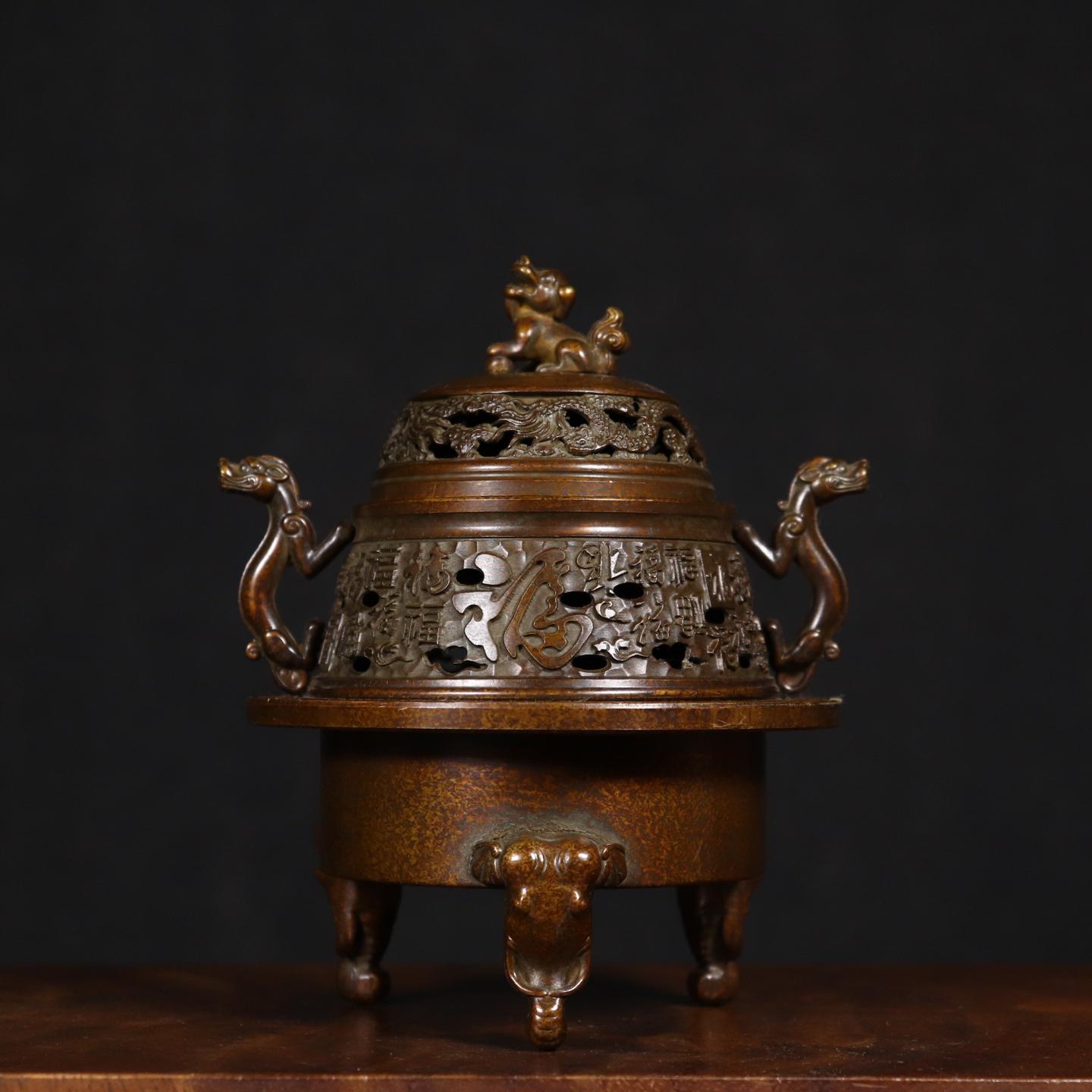 Antique Style Bronze Incense Burner: Chinese Temple Decor