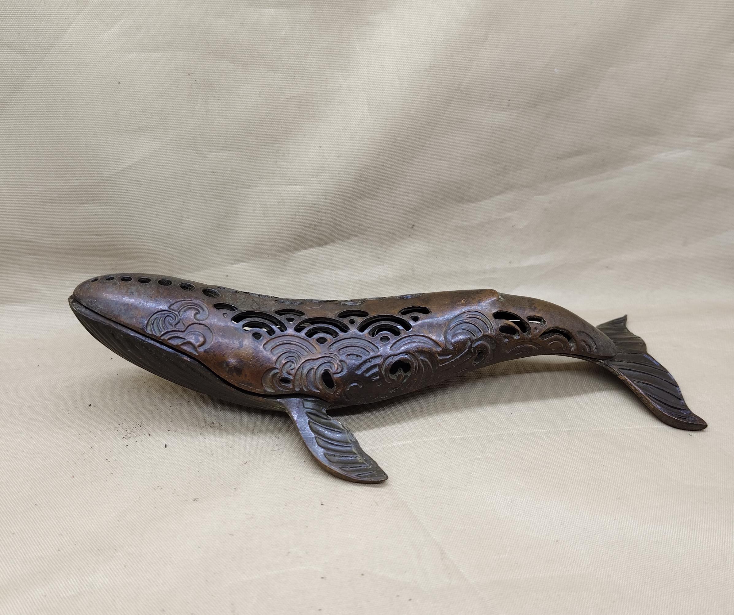 Hand-Cast Patinated Bronze Whale Incense Stick Holder Tea Pet | Oce...