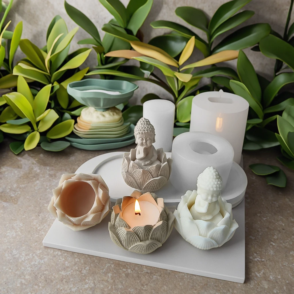 3D Lotus Buddha Candle Silicone Molds Aromatherapy Plaster Candlest...