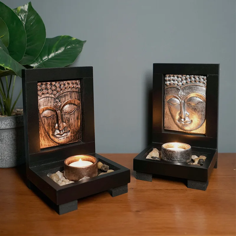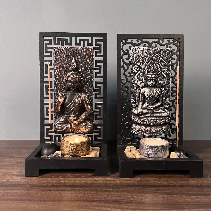 New Product Wood Resin Buddha Statue TGA19 Candlestick Wooden Ornam...