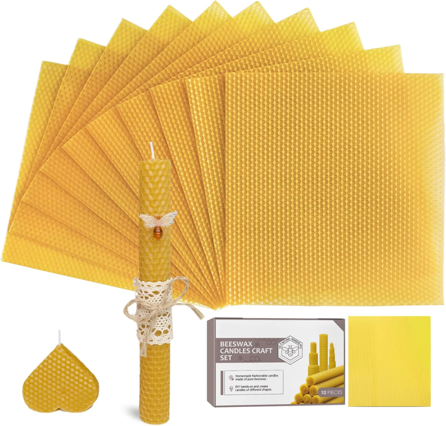 Lacaser Beeswax Candle Making Kit Hand-Rolled 10pcs Yellow Beeswax ...