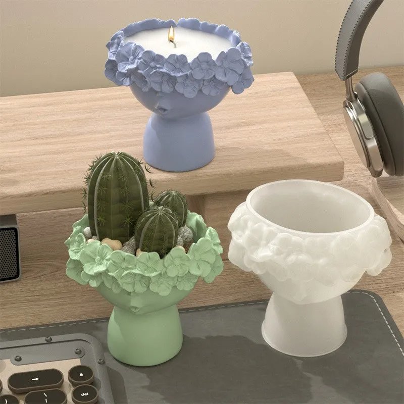 3D Candle Cup Jar Container Silicone Mold DIY Vase Concrete Mold Cu...