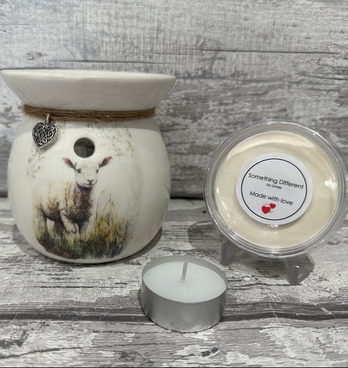 Lamb wax burner gift set, soy wax melts, oil burner, sheep wax burn...