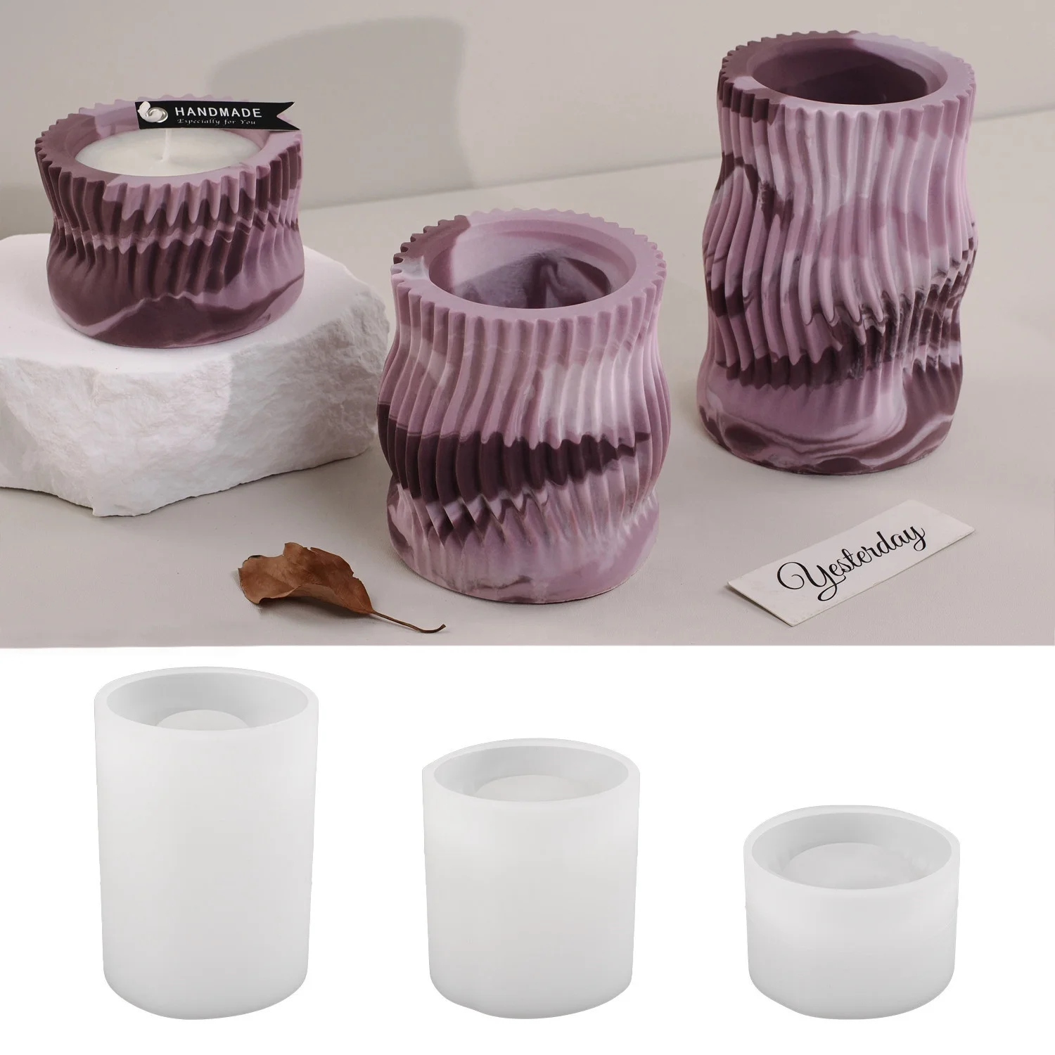 DM912 Large Striped Candle Jar Silicone Mold Irregular Storage Box ...
