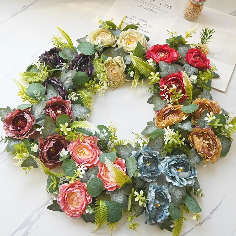 Wholesale Modern Artificial Floral Wreath Pink Red Heart-Shaped Can...