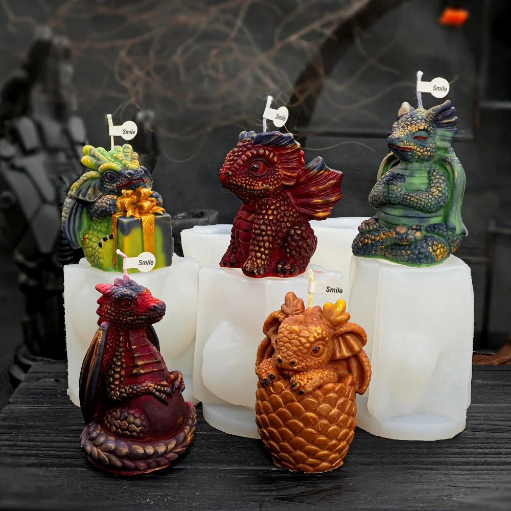 DIY Dragon Silicone Candle Mold Cartoon Animal Dragon Soap Resin Mo...