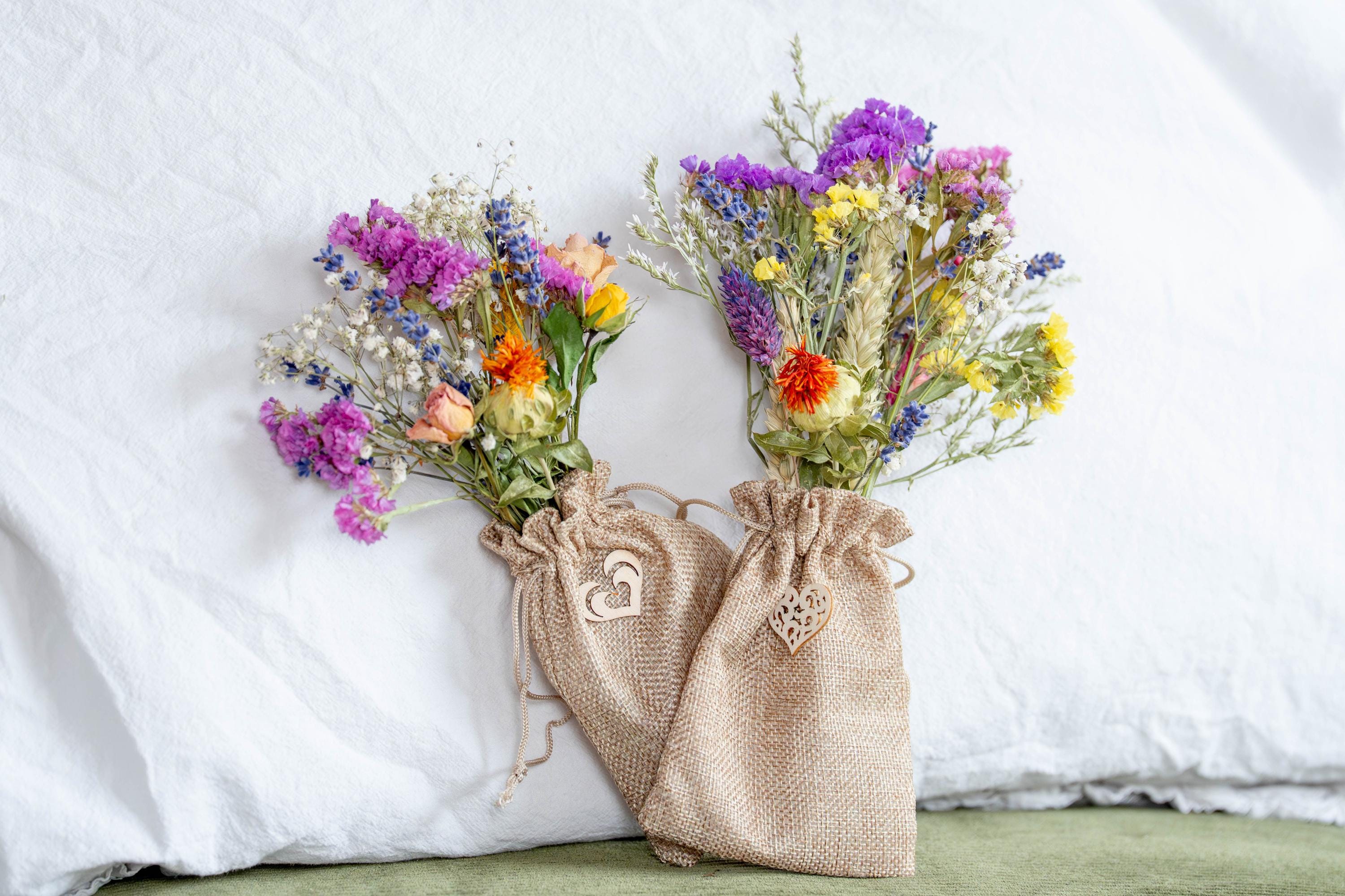 Dried Flower Posy in Hessian Bag | Lavender, Roses & Statice Dr...