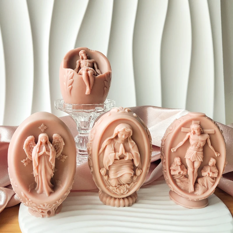 3d Diy Jesus and Virgin Mary Angel Egg Candle Silicone Mold Caratte...