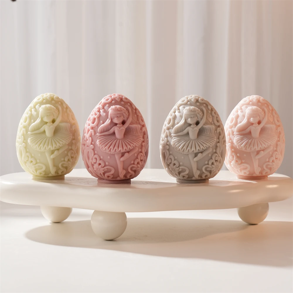 Easter Decor Dancing Girl Egg Candle Silicone Mold Flower Egg Soy W...
