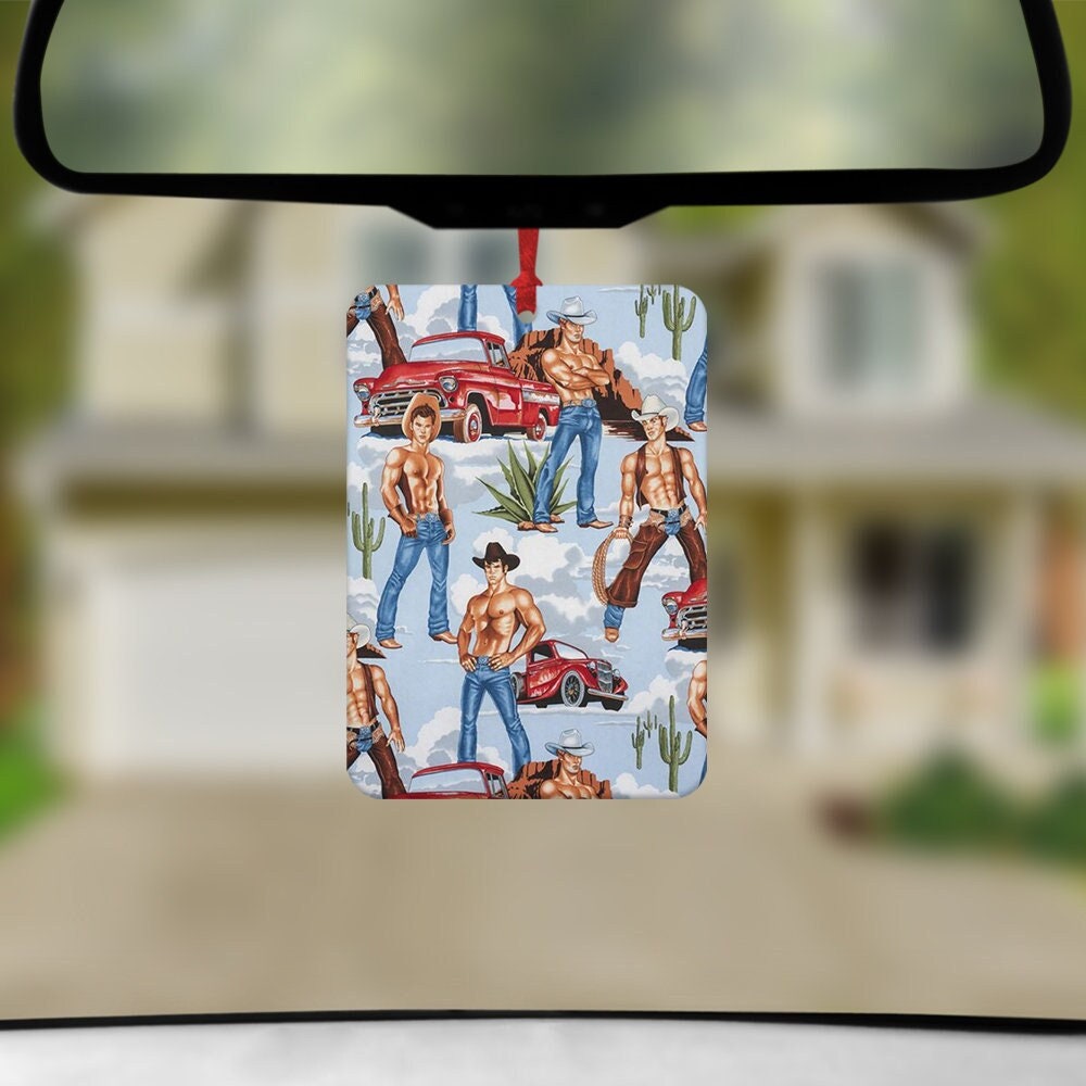 Pin Up Cowboy Car Air Freshener, Funny Car Air Freshener, Car Acces...