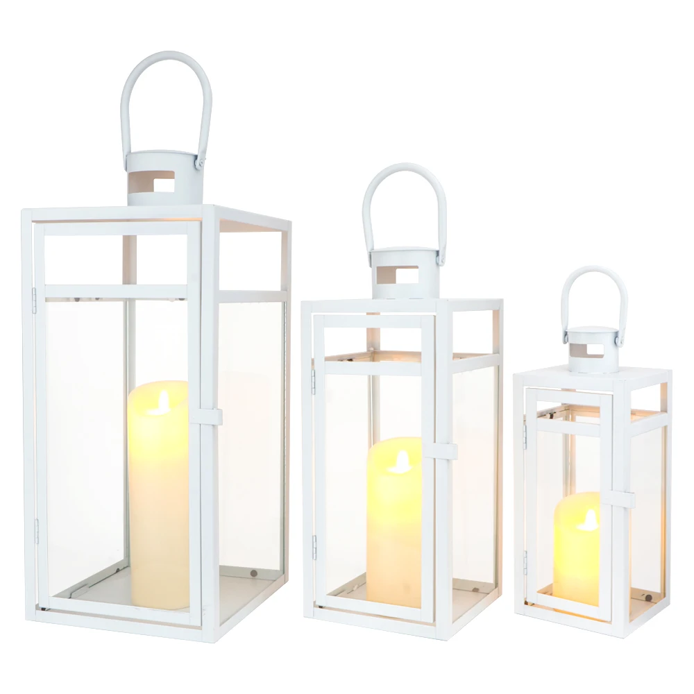 Set of 3 Modern Large Metal White Candle Lantern Garden Hanging Met...