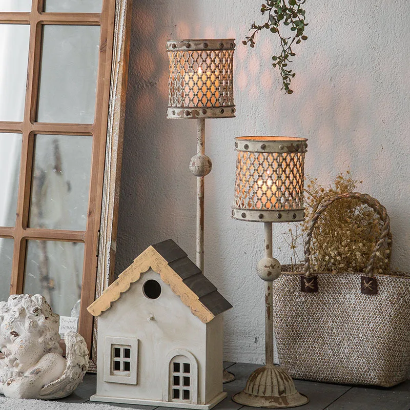 Vintage French Style White Wrought Iron Bowknot Candle Holder Europ...
