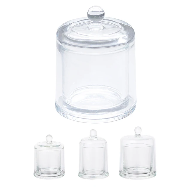2 Sets Glass Candle Holder With Dome Cloche Clear Glass Jar Tableto...