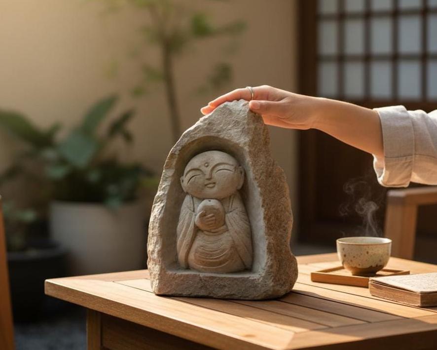 Jizo Buddha Stone Incense Holde 11 inch (28 cm), jizo Buddha sculpt...