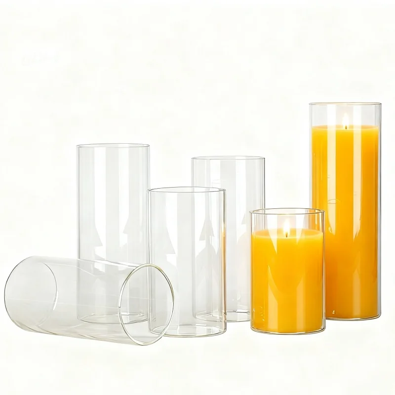 White Pillar Candles with Glass Cylinder Vases Clear Hurricane Glas...
