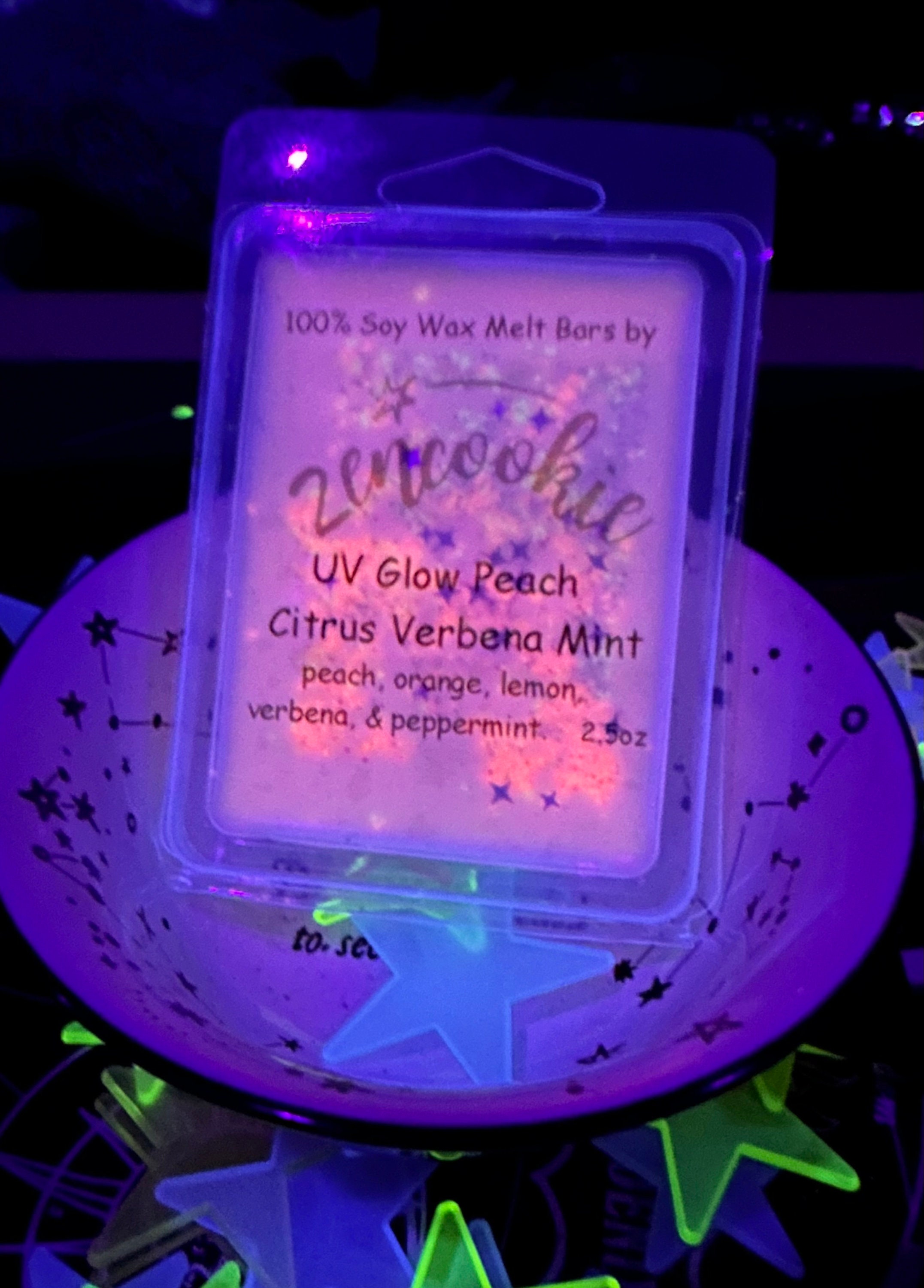 Peach Citrus Verbena Mint Soy Wax Melt: UV Glow, Glitter Confetti