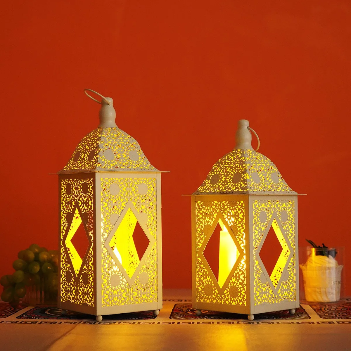 Hot Selling Eid Mubarak Handheld Candle Holder Iron Wind Lamp Aroma...