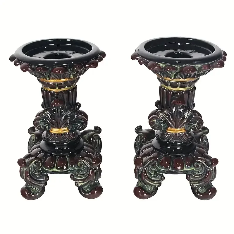 Baroque-Style Resin Candlesticks Hand-painted Ornate Artistic Desig...