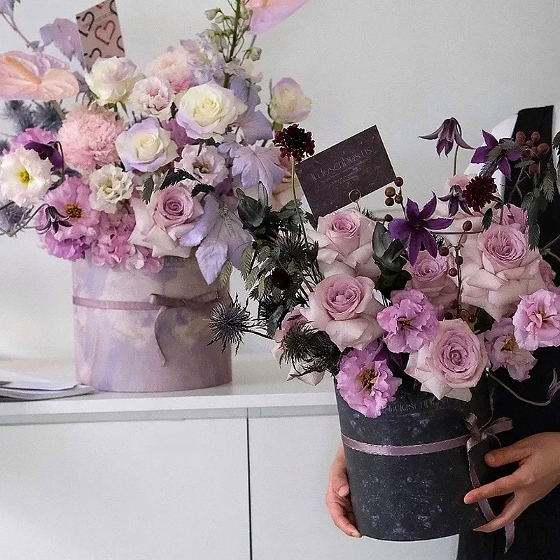 Cardboard Paper Roses Flower Package Box Simple Style Hat Box Packa...
