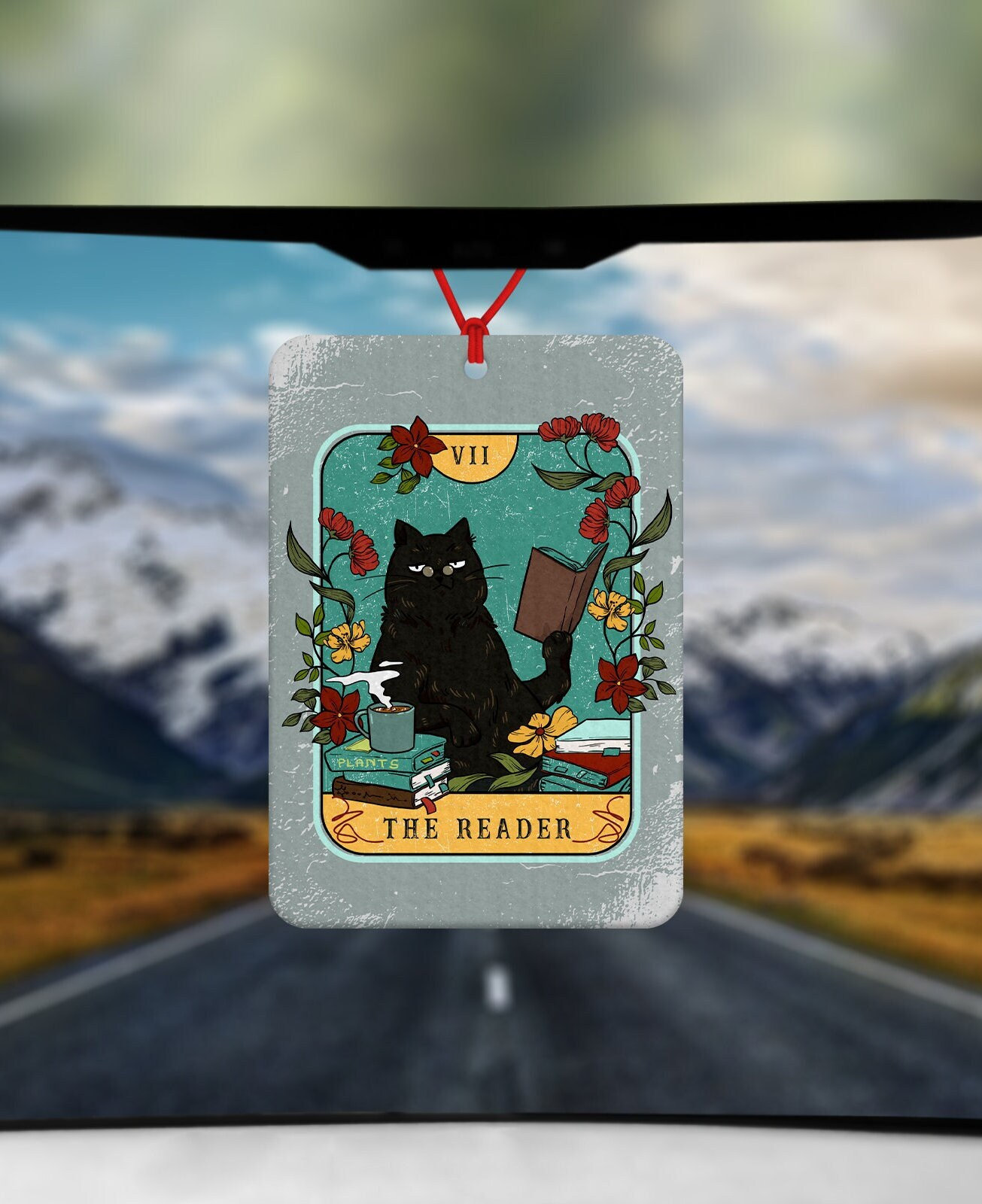 Tarot card car air freshener - car accessories - black cat reading book - the Reader - tarot card re...
