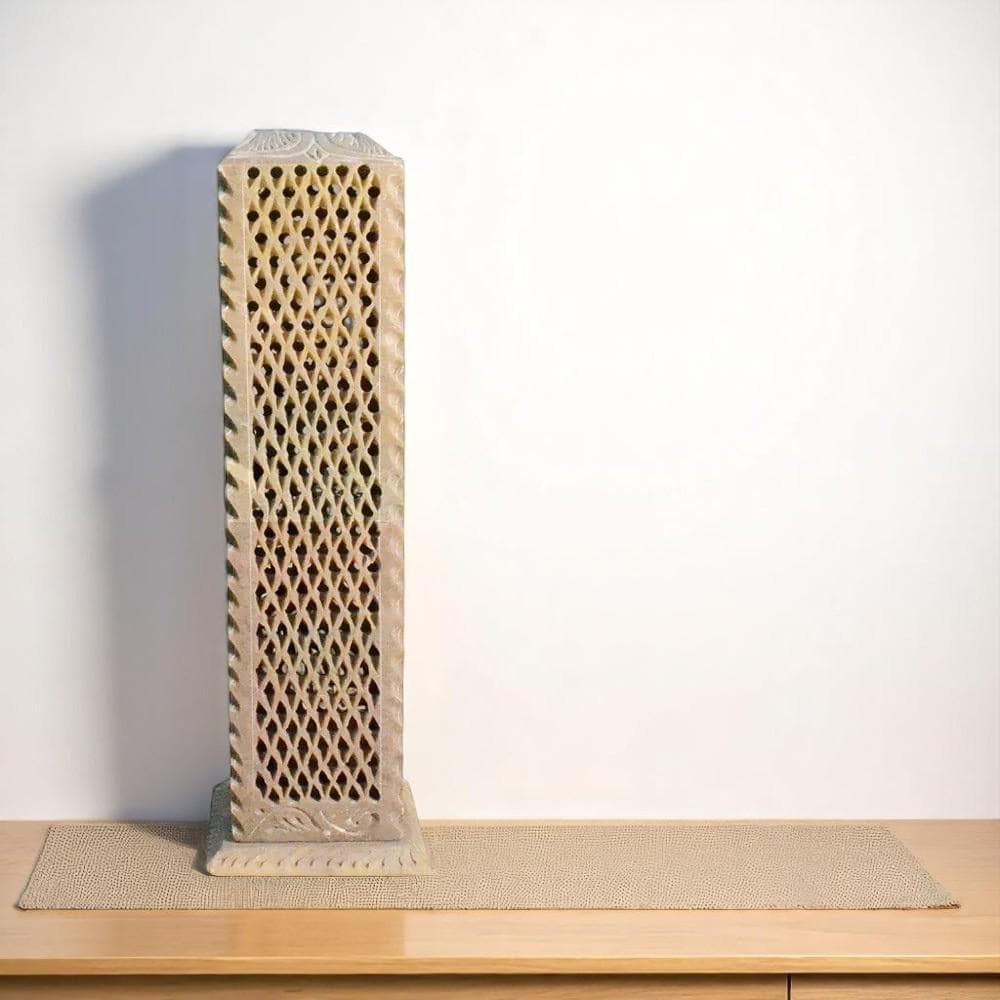 Hand-Carved Soapstone Incense Holder & Candle Stand: Indian Jal...