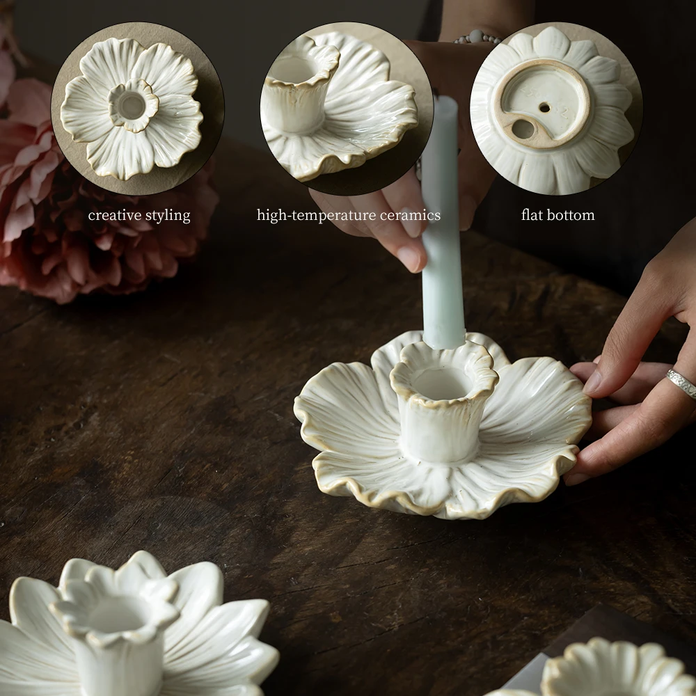 Custom Design Kiln Flower Ceramic Candle Holder Handmade Simple Whi...