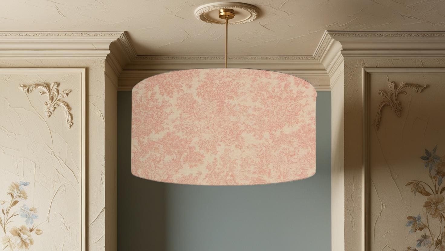 Toile de Jouy Zen in Pink Lampshade, Handmade Fabric Lamp Shade, Dr...