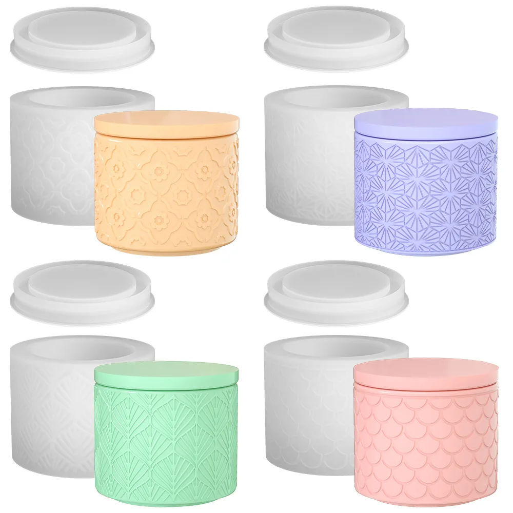 Pattern Plaster Vase Mold Candle Holder Silicon Mold Round Concrete...