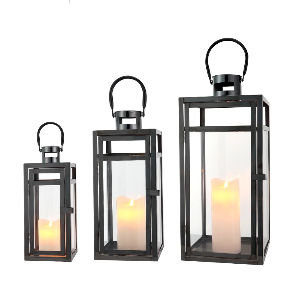 Large Black Stainless Steel Candle Lantern Garden Hanging Metal Can...