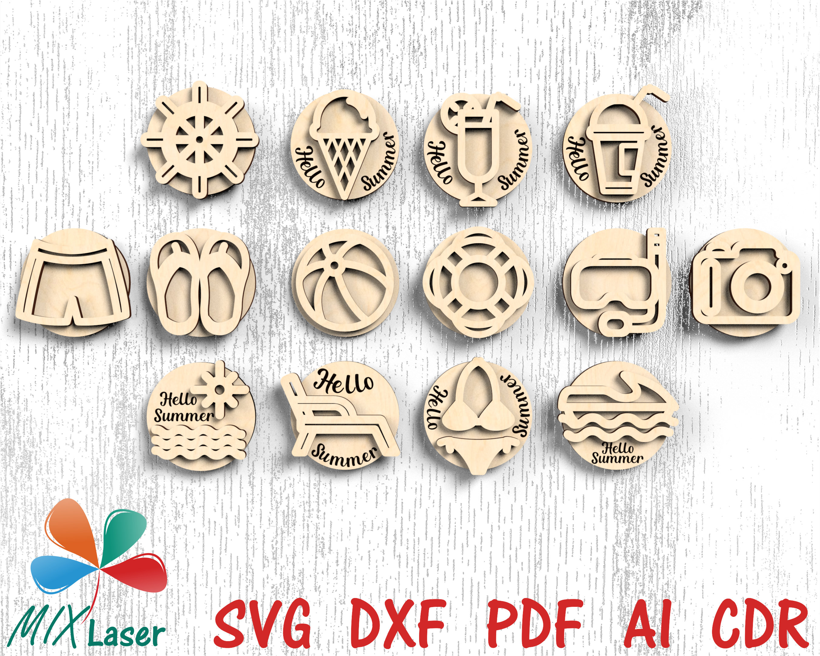 "\"Hello, Summer!\" car vent clips laser cut SVG DXF AI PDF CNC files. Car Freshener ...