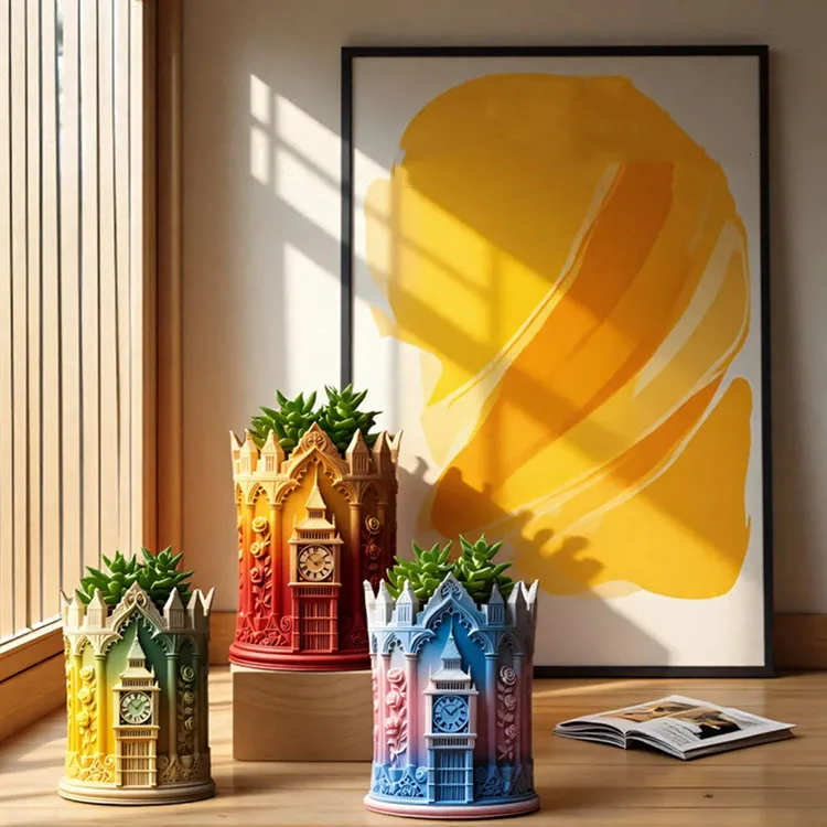 YS Big Clock Tower Building Candle Jars Silicone Molds Gypsum Stora...