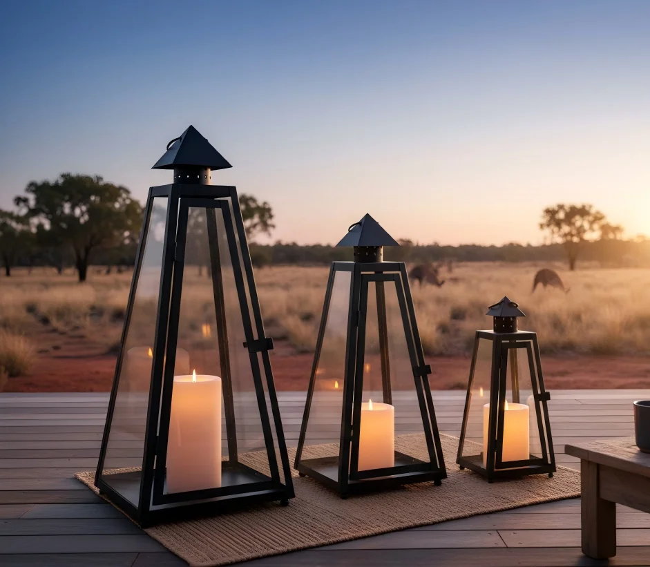 Outdoor Indoor Metal Candle Lantern Set Modern Black Hurricane Lant...