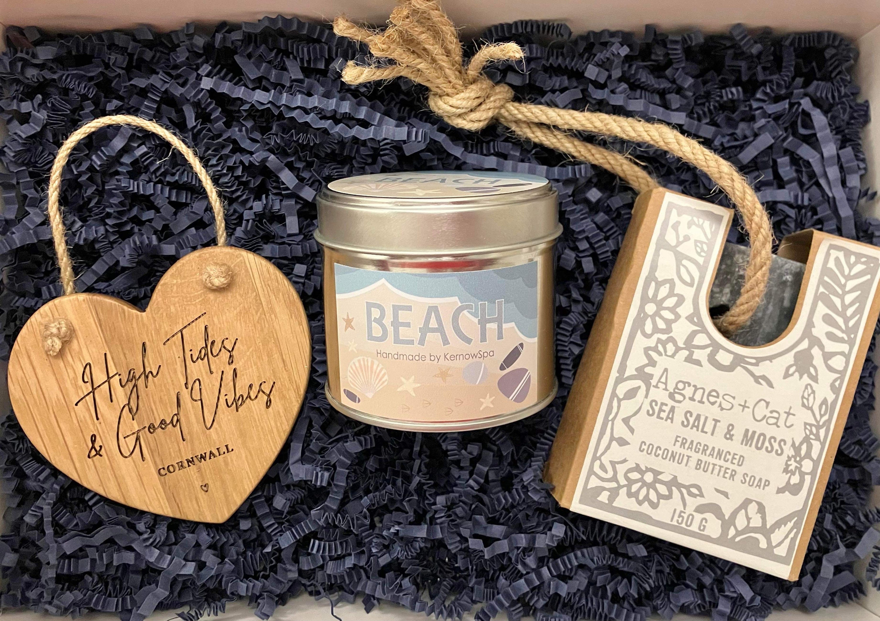 Cornish Beach Gift Set: Handmade Soy Candle, Sea Salt Soap, Wooden ...