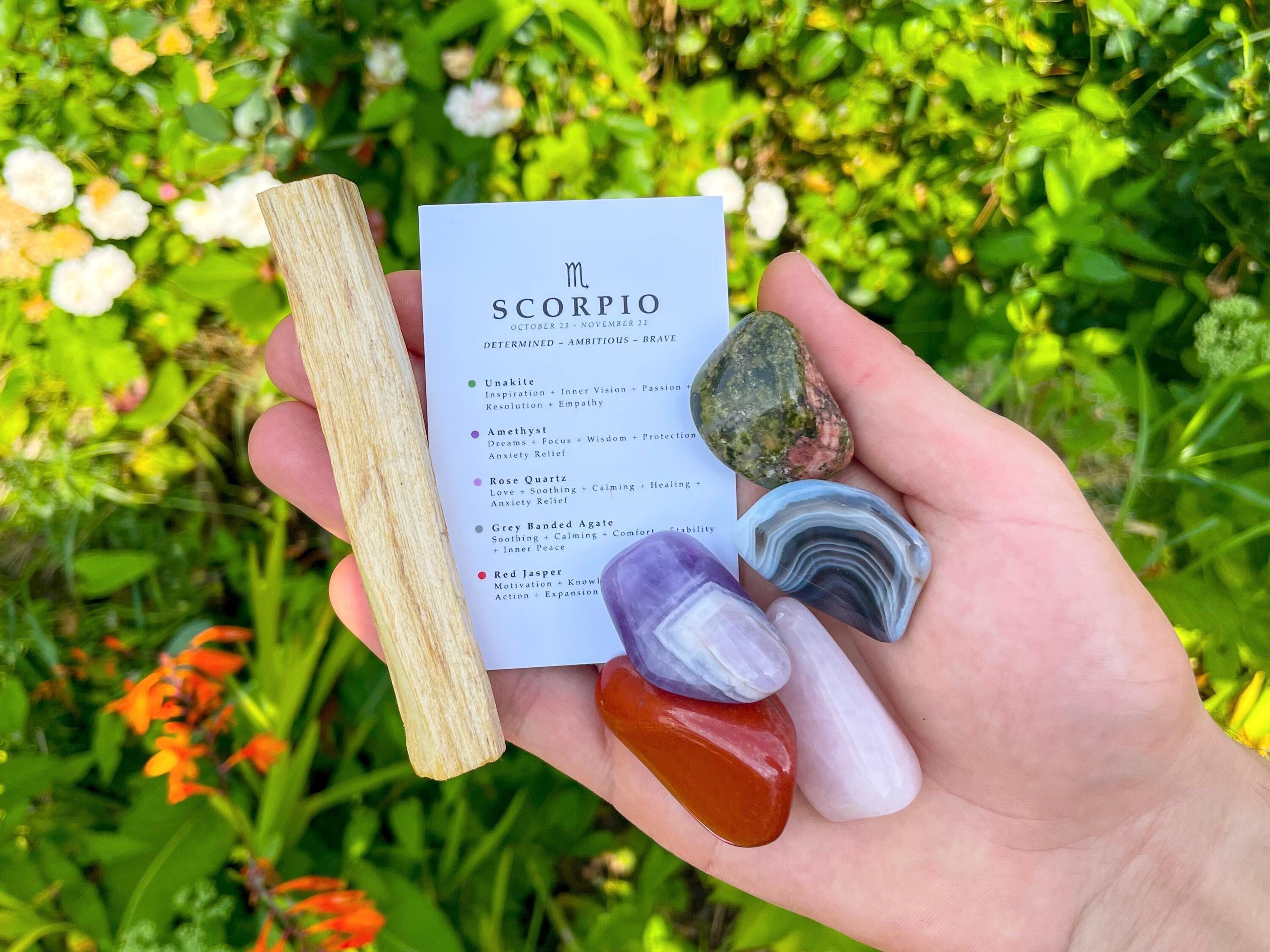 Scorpio Crystal Set // With Palo Santo, Zodiac Sign Astrology Gemst...