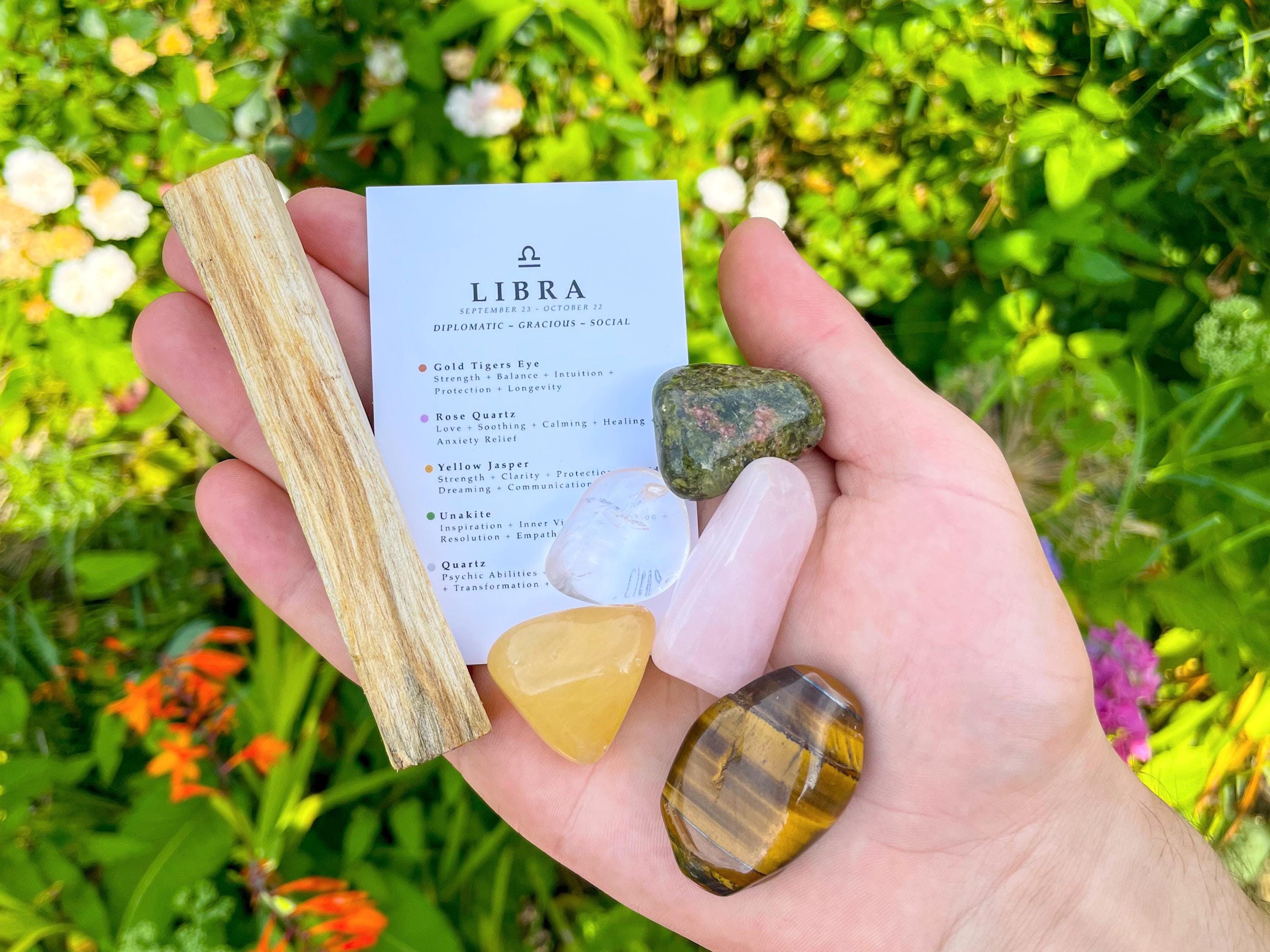 Libra Crystal Set // With Palo Santo, Zodiac Sign Astrology Gemston...