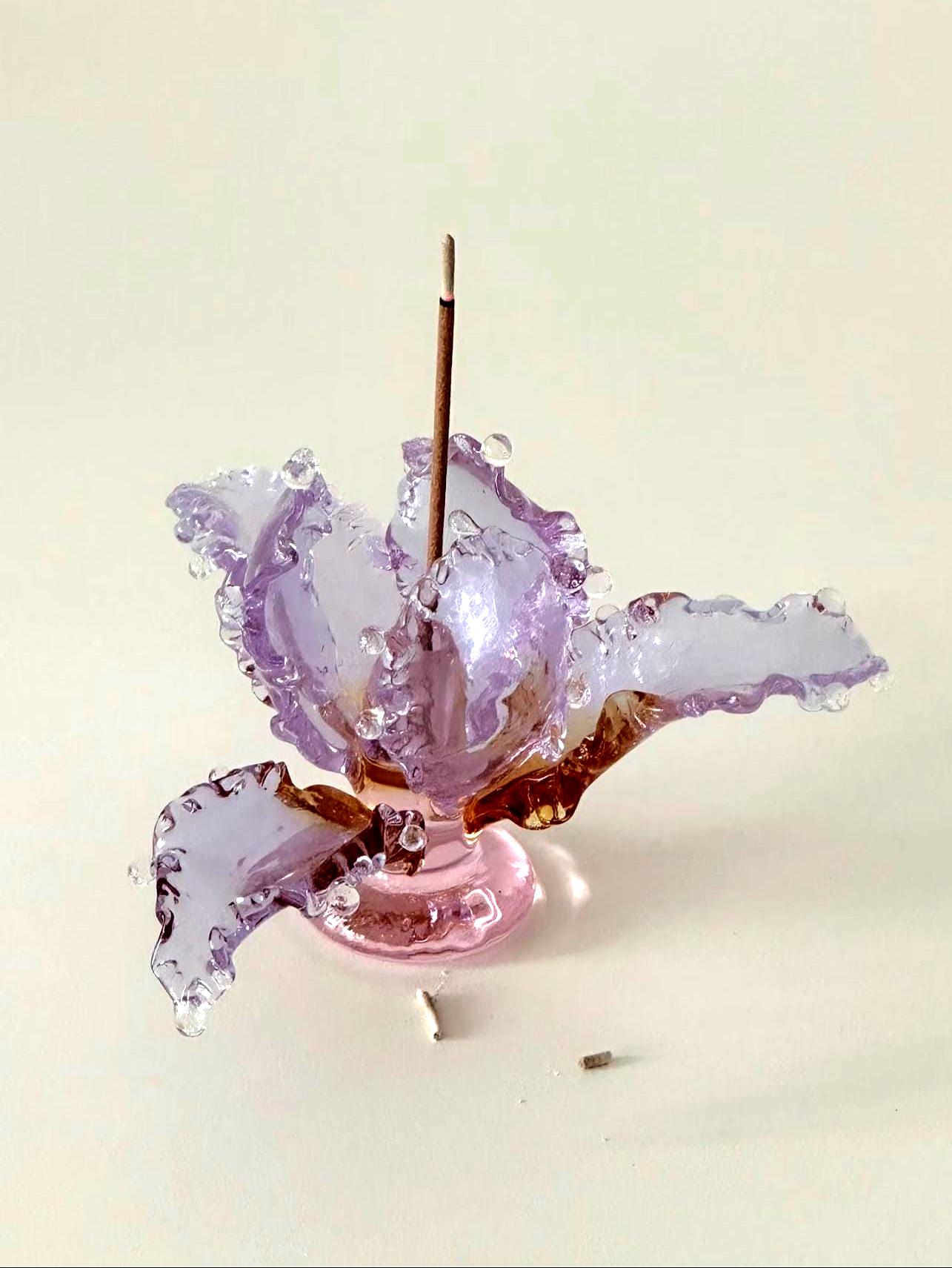 Handmade Blown Glass Flower Incense Holder, Artistic Glass Incense ...