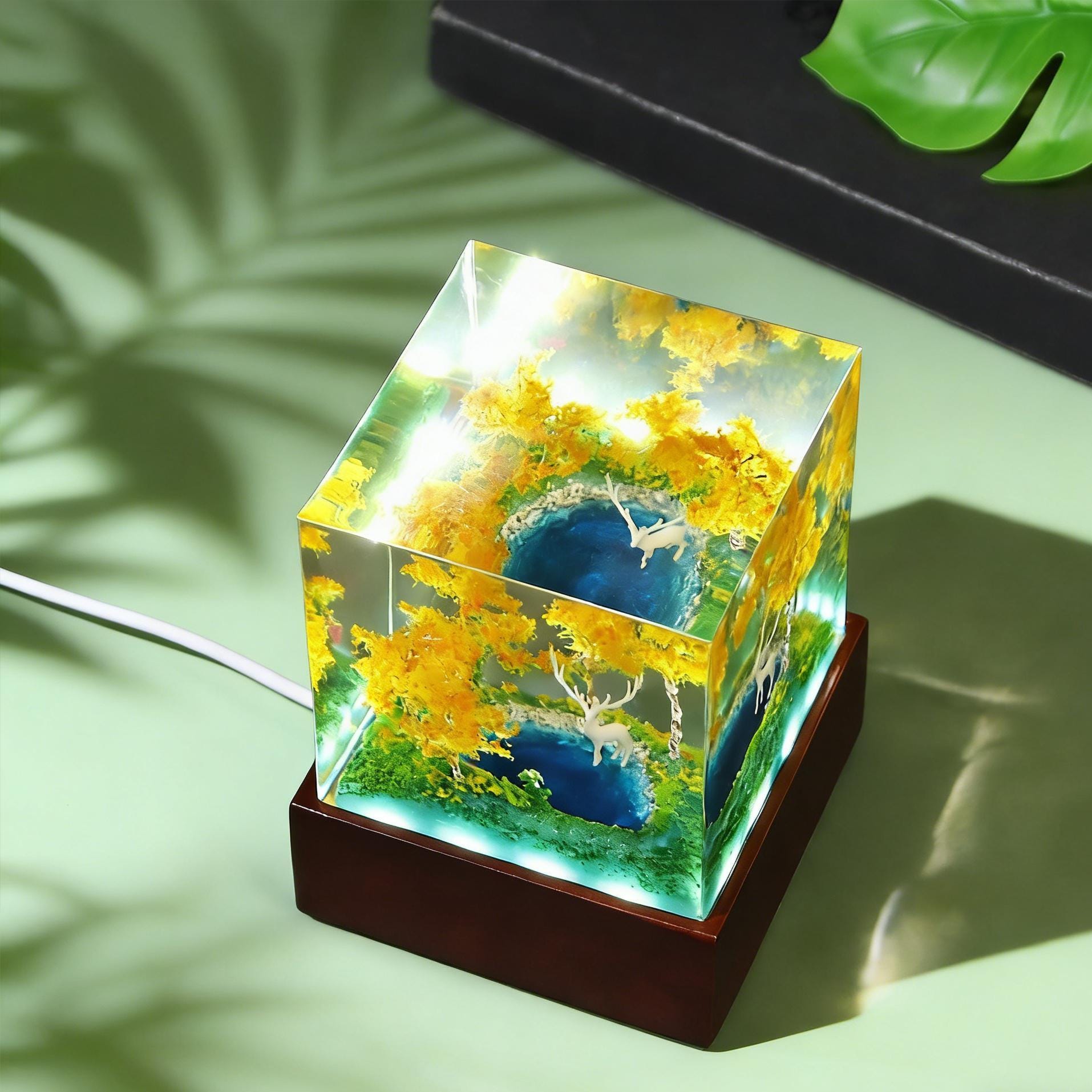 Forest Lake Resin Lamp,Deer Micro Night Light Forest Lake Nursery D...