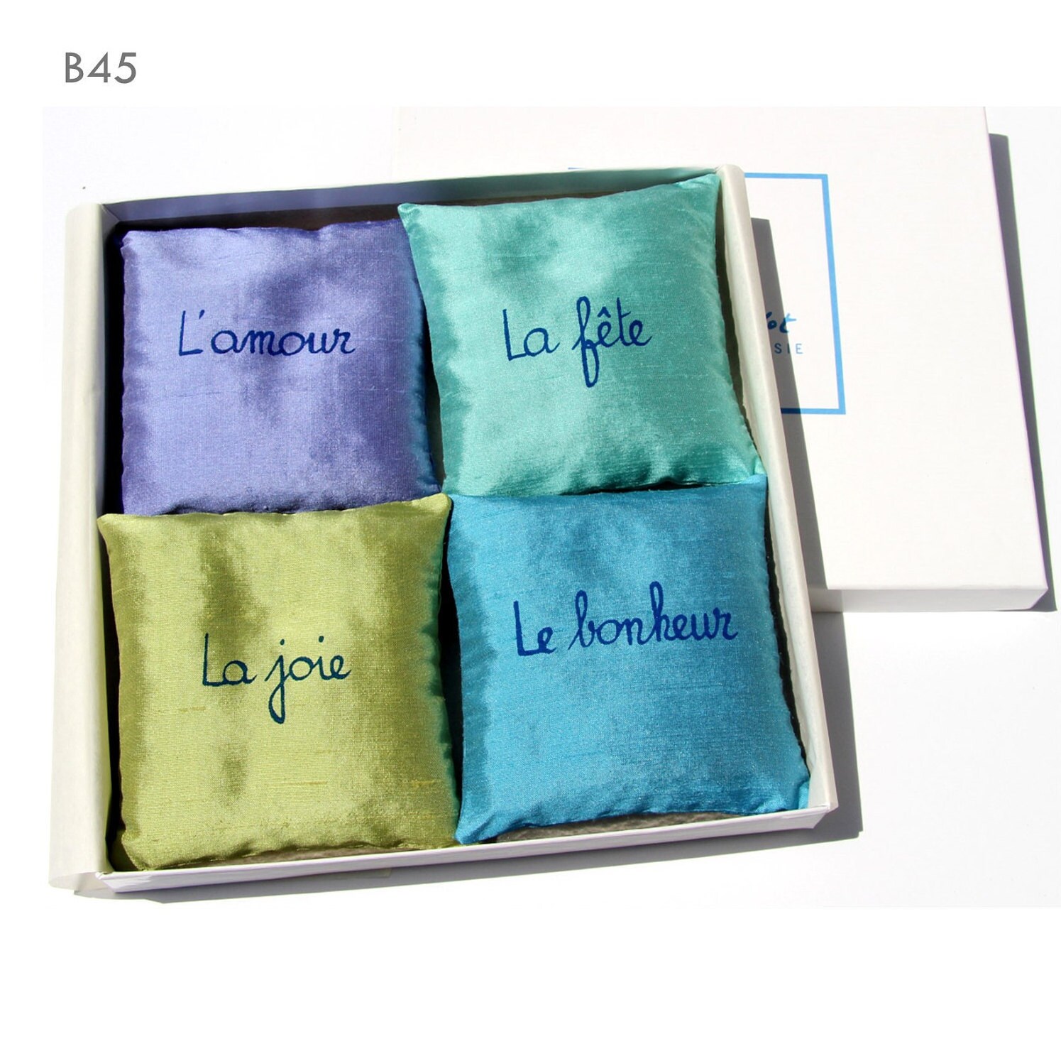 4 silk French lavender sachets in giftbox. Housewarming, unique gif...